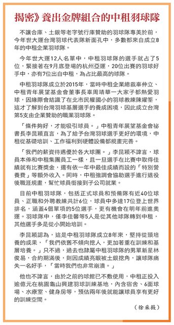 要做什麼,全都不同,他們自然打不好。」中租羽球隊教練黃博翊點出關鍵。