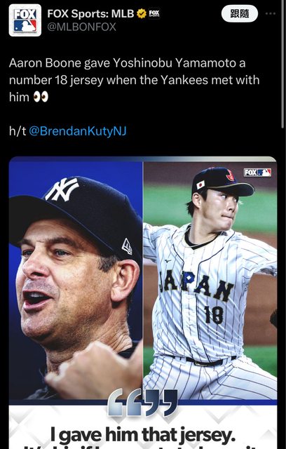 推 same60710: 前天有新聞說山本是高調的人 那洋基應該穩了12/22 11:36