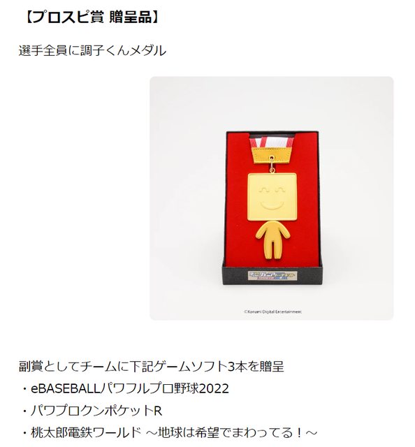 獲勝隊伍全員獎品有野球魂A調子獎牌