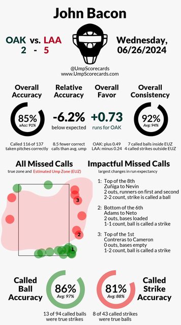 標題[分享] 今天運動家天使主審好壞球準度85%