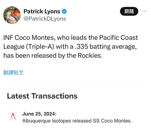 推 hitokiri: 記得巴冷天的小名也是Coco~XD 我猜是廣島緊急補強 06/27 23:33