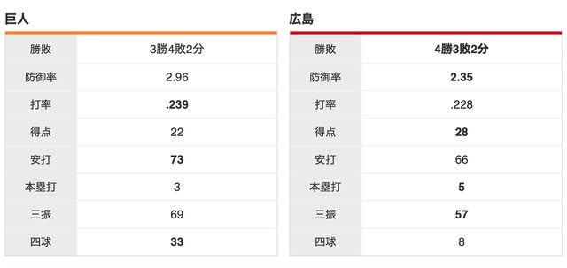 廣島 4 勝,巨人 3 勝,2 和