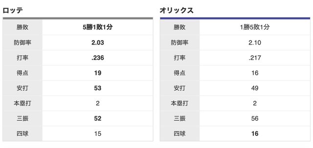 羅德 5 勝,歐力士 1 勝,1 和