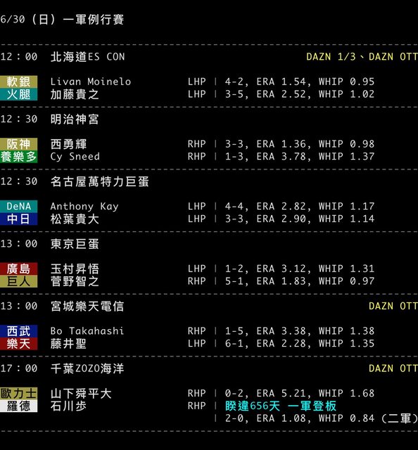 6/30(日)一軍例行賽
