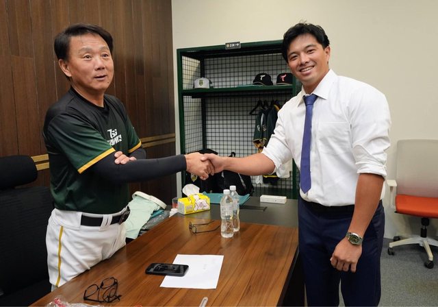 年約,總值3600萬元,今(30)日在澄清湖大本營舉辦加盟儀式,洪一中總教練為他戴上
