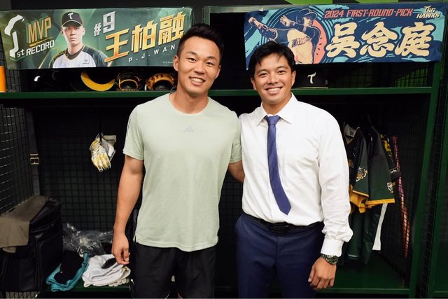 大王」王柏融用100分笑容迎接,「柏融帶我參觀了防護室、餐廳、球員休息室,謝謝他