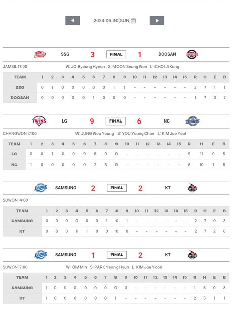 標題[數據] 韓職6/30結果(連續打者奪三振平記錄)