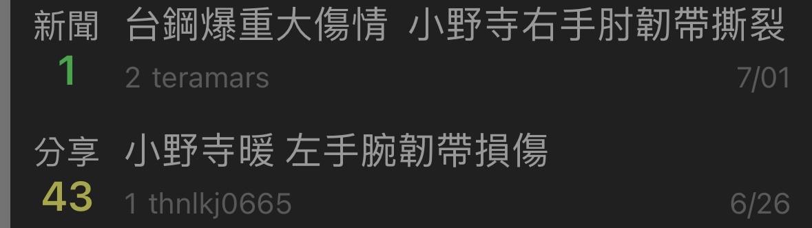 → Fitzwilliam: 小野寺暖是受傷的阪神外野手,跟台鋼投手有啥關係? 07/01 16:58