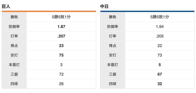 中日 5 勝,巨人 5 勝,1 和
