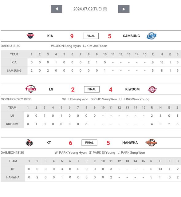 標題[數據] 韓職7/2結果(Kelly連6季100局洋將第3次)