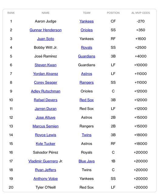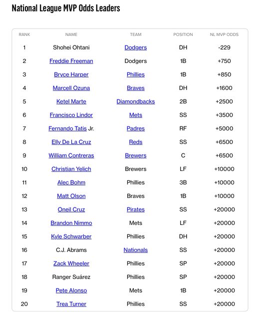 標題Re: [討論] 現階段2024MLB MVP賠率