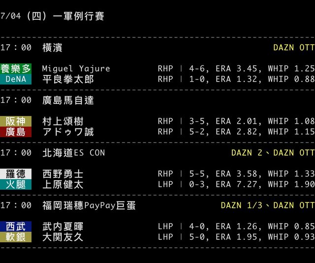 標題[情報] NPB 7/04 預告先發