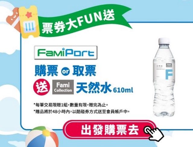 標題[情報] 全家購票或取票送水&抽機票