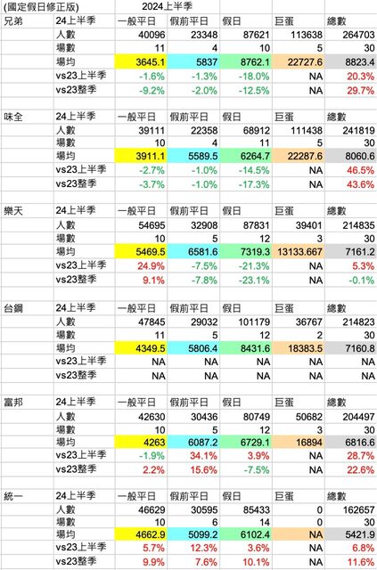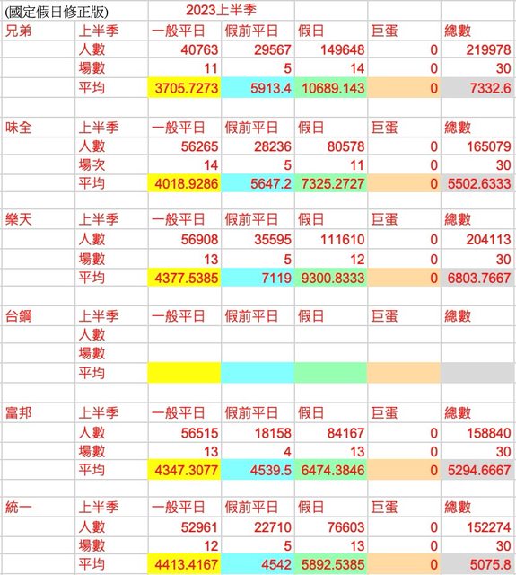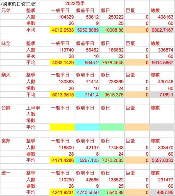 標題[情報] 2024 中職上半季各隊主場平假日場均