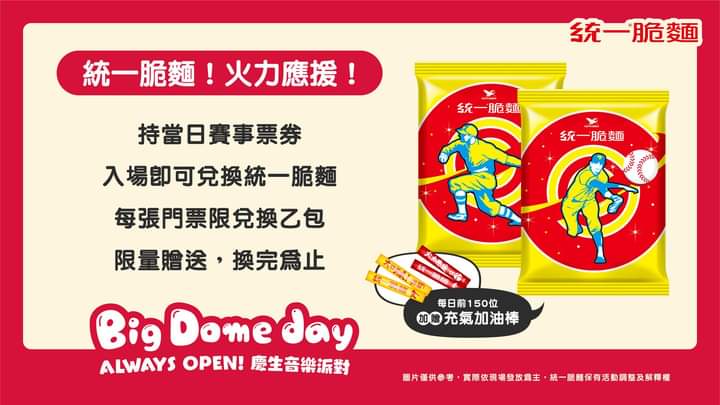 推 LORDSKERR: 台南球場送統一麵,好像還比較好 07/04 21:59