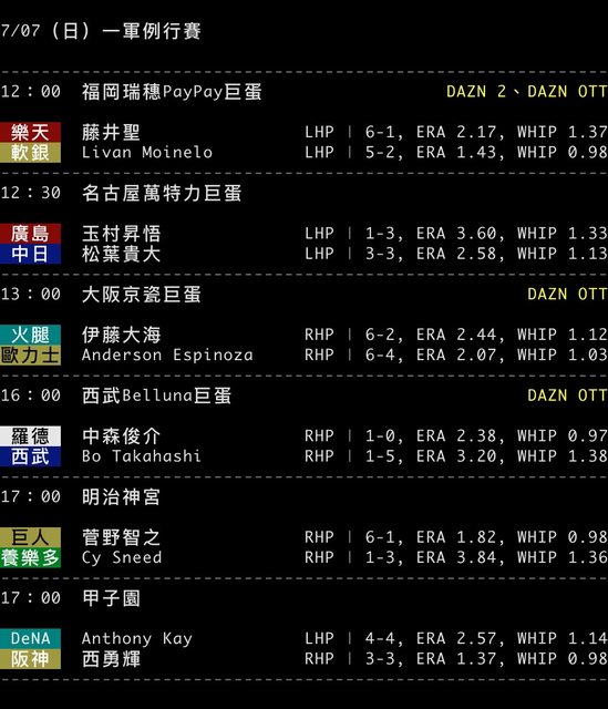 7/07(日)一軍例行賽