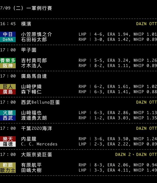 標題[情報] NPB 7/09 預告先發