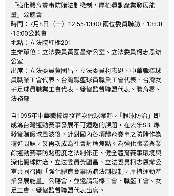 推 daniel1344: 啊現在就要修運動產業發展條例 不然幹嘛開公聽會 07/08 16:22