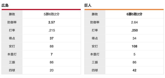 對廣島 4 1 0 1 5.40 1.00 10 9 0 5 1 6 6 .237