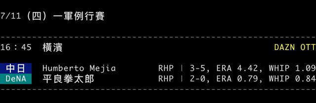 標題[情報] NPB 7/11 預告先發