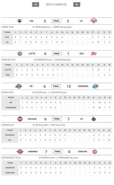 標題[數據] 韓職7/10結果(金澤延9球3K 種哥新里程碑)