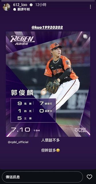 推 JoeGibsonJr: 郭上次完投是大學投國家隊的時候了吧 07/11 13:03