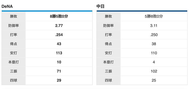 DeNA 8 勝,中日 5 勝