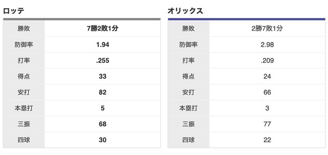 羅德 7 勝,歐力士 2 勝,1 和