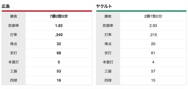 團隊打擊 .230/.283/.310 先發ERA 2.15 先發WHIP 1.12