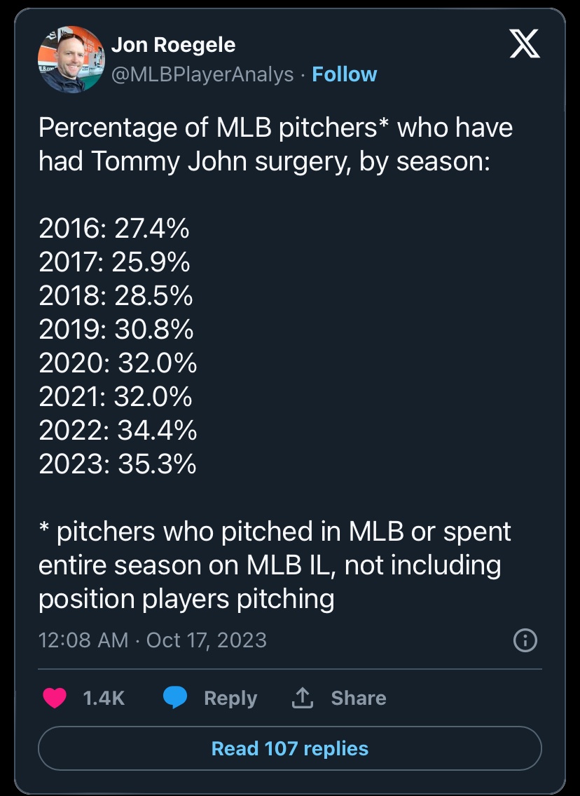 推 KWBilly: 別把科學化當神,mlb開TJ的比例可是逐年增加… 07/13 13:30