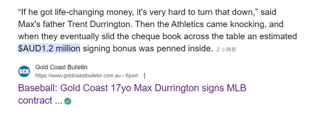 今天運動家隊宣布簽下澳洲籍17歲新秀Max Durrington