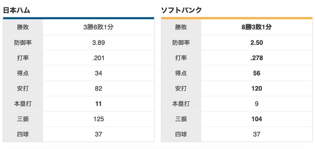 軟銀 8 勝,火腿 3 勝,1 和
