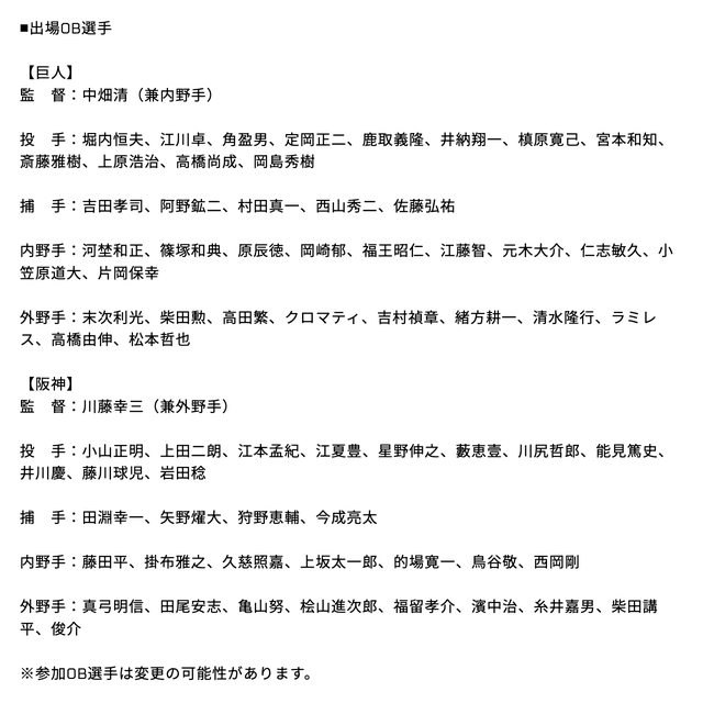 ★賽後進行 讀賣巨人×阪神虎 傳奇OB對決