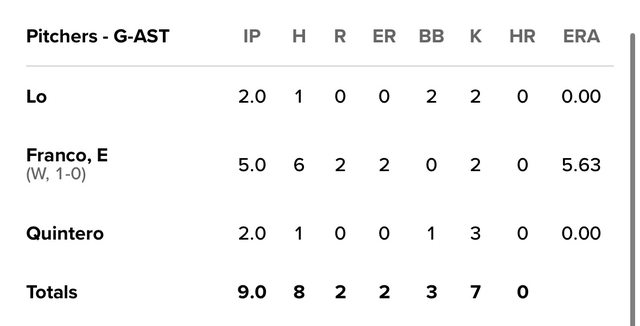 ERA 0.00 WHIP 0.636