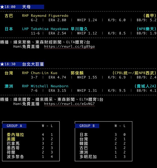 → HWtseng: 明天日本贏古巴,台灣贏澳洲,後天古巴直接變消化比賽 11/17 00:04