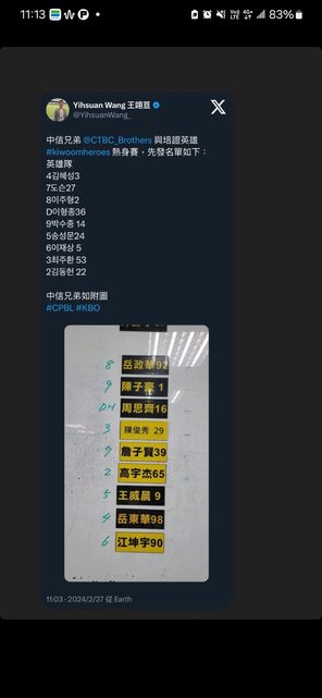 推 star880613: 甩換成阿明基宏子豪 69棒互換就差不多啦 02/27 11:44