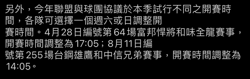 → book8685: 新聞寫各隊可任選一個六或日調整午跟晚場02/27 18:57