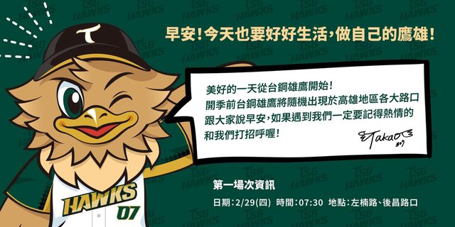 推 lucian5566: 2026 TEAM HAWKS 台鋼要贏 點亮高雄 02/28 21:05