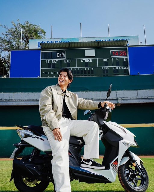 男明星拍照拍到棒球場去了 業配(X)提前預告主題日(O) --