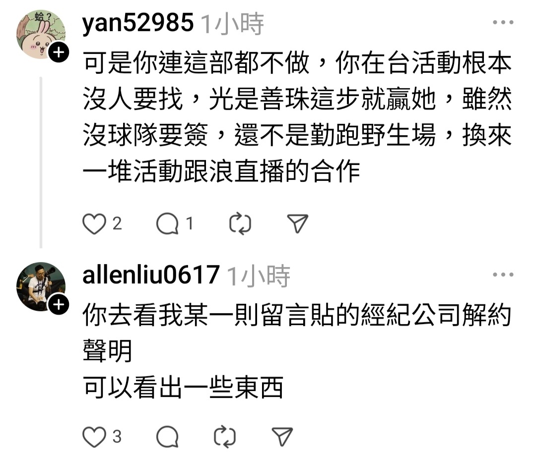 → SSglamr: 不是一選不就黑的更刻意,剛簽新的三天前黑料再提一次XD 04/16 00:38