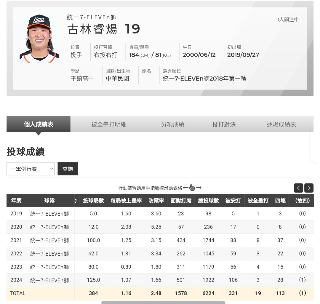 → WasJohnWall: 古林的問題是他21-22沒配速,5局中場後休息就沒力 04/16 00:10