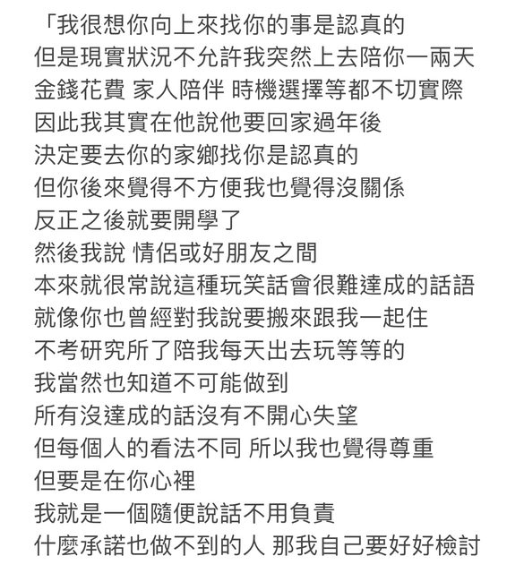 : 大概過了一天 他突然傳了一段訊息說