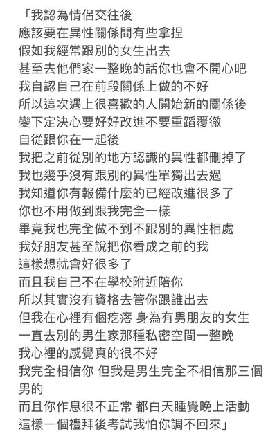 : 我交往前覺得沒什麼 畢竟我也很多女性朋友