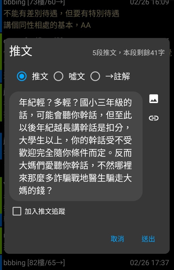 → mangle : 幹話,不管幾歲都是如此,不是女人年輕與否的問題 02/26 18:55