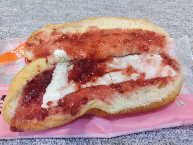 單吃果粒的這面就是很濃的草莓果醬麵包