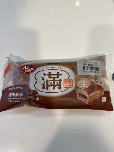 【商品名稱/價格】:全家榛果濃可可 生滿餡麵包/39元