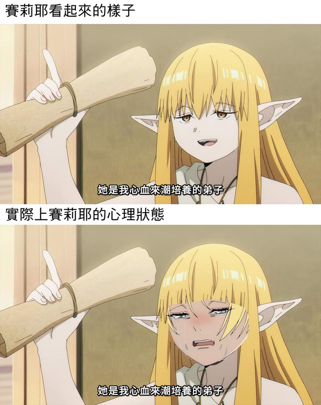 : 什麼嘛,妳還是懂我的(哭哭)。為什麼這麼快就離我而去(哭哭)。這個芙莉蓮竟然說不懂妳的意思。看來她不懂妳從小的夢想,也不懂妳完成多麼大的成就。我一定要把一切說給她聽,畢竟能這麼做的只剩我這個師祖了(哭哭)。