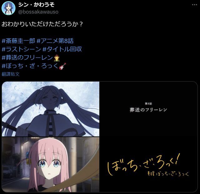 芙莉蓮和孤獨搖滾的動畫監督一樣是齋藤圭一郎