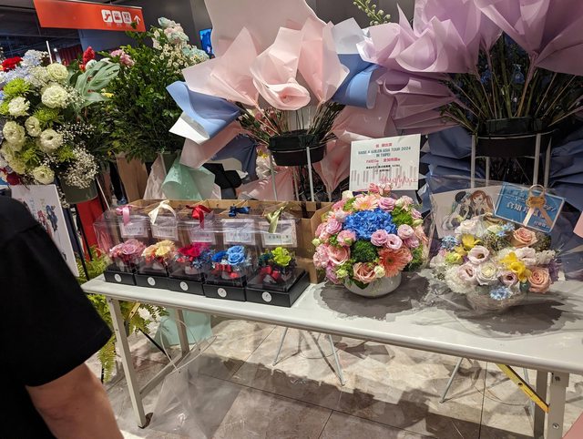 花籃被搬出來的時候上面的牌子(像上圖的耳機)歪歪的,看了實在不太忍心就盡量幫忙扶