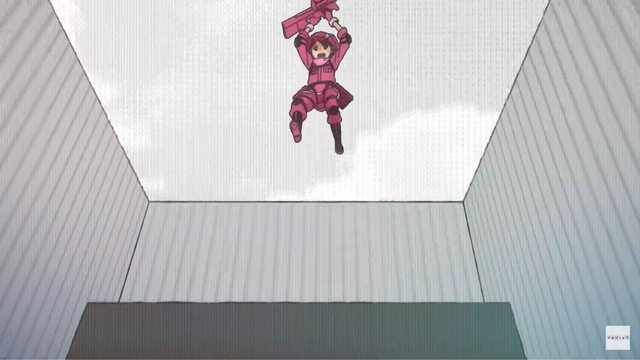 手持MCS 870破門式霰彈槍的Pitohui,這裡是在用霰彈槍攔截敵方小隊射過來的榴彈